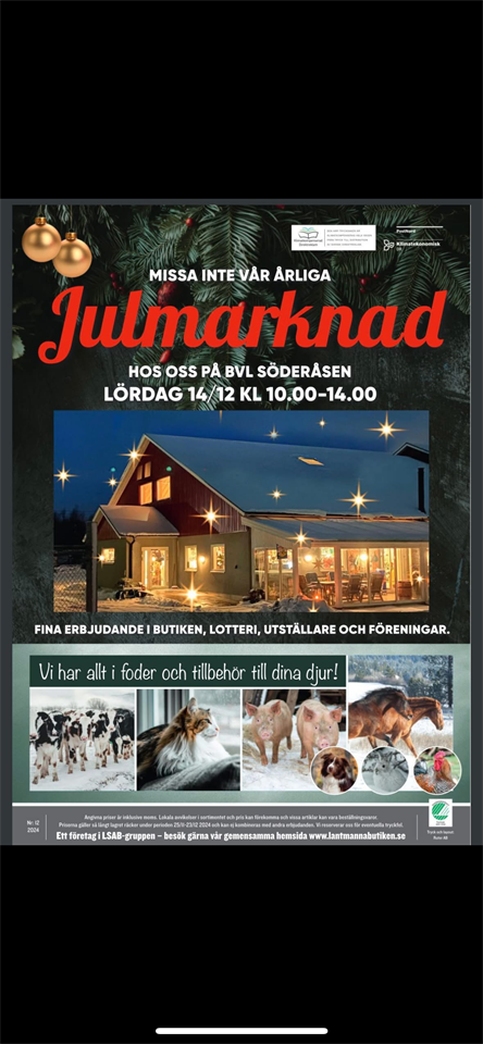 Hej! Även denna helg medverkar vi på två olika platser. Julgransförsäljning 🎄 Utanför Coop säljer vi julgranar både lördag och söndag mellan kl.10:00-16:00. Välkommen att fynda er gran hos oss! Julmarknad på BVL Som traditionen bjuder så är vi som vanligt på plats med vårt stora "Jullotteri" under BVL:s julmarknad i morgon mellan kl.10:00-14:00. I år är prisbordet större en vanligt så missa inte att köpa en lott av oss! Välkomna! /Kågeröds BoIF Kågeröds BoIF 13 dec 2024 0kommentarer